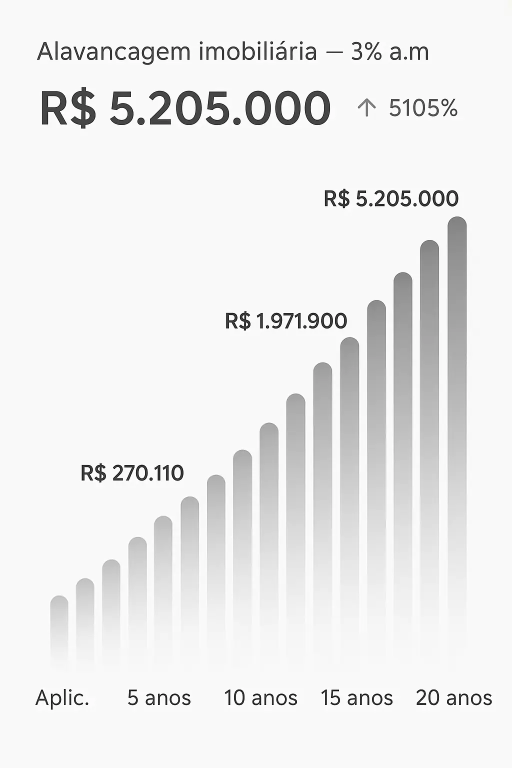 A alavancagem patrimonial permite ao investidor comprar um imóvel com capital de terceiros, onde a rentabilidade do aluguel cobre os custos da parcela, gerando rentabilidade com segurança.